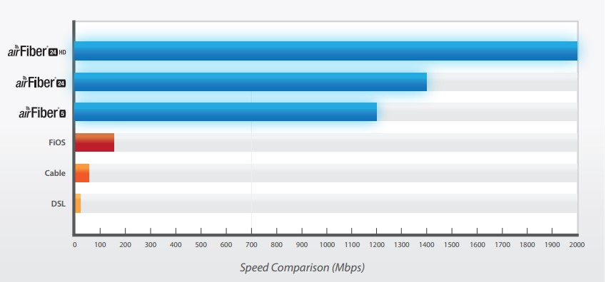 Ubiquiti, özel tasarladığı IÇift radyo kartlı yenilikçi tasarımı ile  AirFiber™ ürünlerinde saniyede 1 Milyon paket taşıma  imkanı üretmektedir.Aynı zamanda Dijital distorsiyon telafisi ve Karışık sinyal ayrıştırma (IFFT) işlemleri ile Lisans gerektirmeyen radyo frekanslarında meydana gelecek potansiyel kirlilik olasılıklarını azaltır ve bu frekans aralıklarında 64QAM gibi yüksek modülasyon kullanımlarına imkan sağlar.
