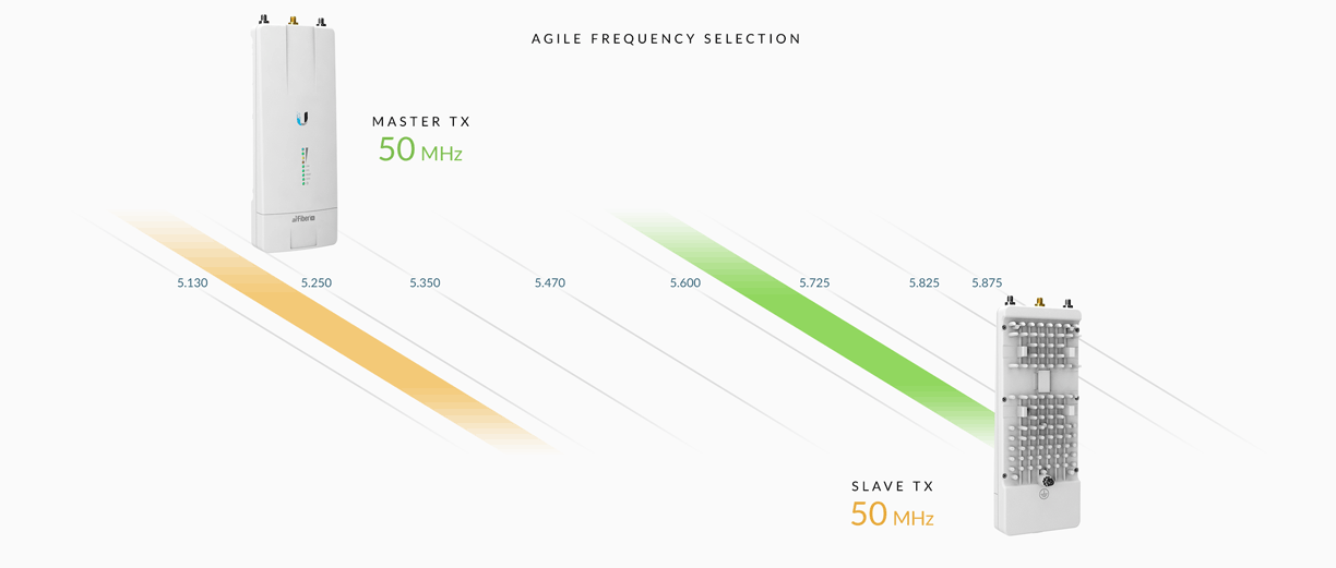 airFiber AF-3X, ülkemizde kamu kurumlarına özel olarak tahsis edilmiş 3GHz spektrumunu kapsar ve DFS desteği ile birlikte 10/20/30/40/50 MHz kanal genişliklerinde kullanılabilmektedir. AF-5X, en yüksek TDD verimliliğini sağlamak için özel olarak geliştirilmiş Hybrid Division Duplexing (HDD) teknolojisini kullanmaktadır, bu teknoloji sayesinde kablosuz haberleşme sırasında cihazlar arası yayılma gecikmesi hesaplanarak paket iletim gecikme problemleri ortadan kaldırılmaktadır.